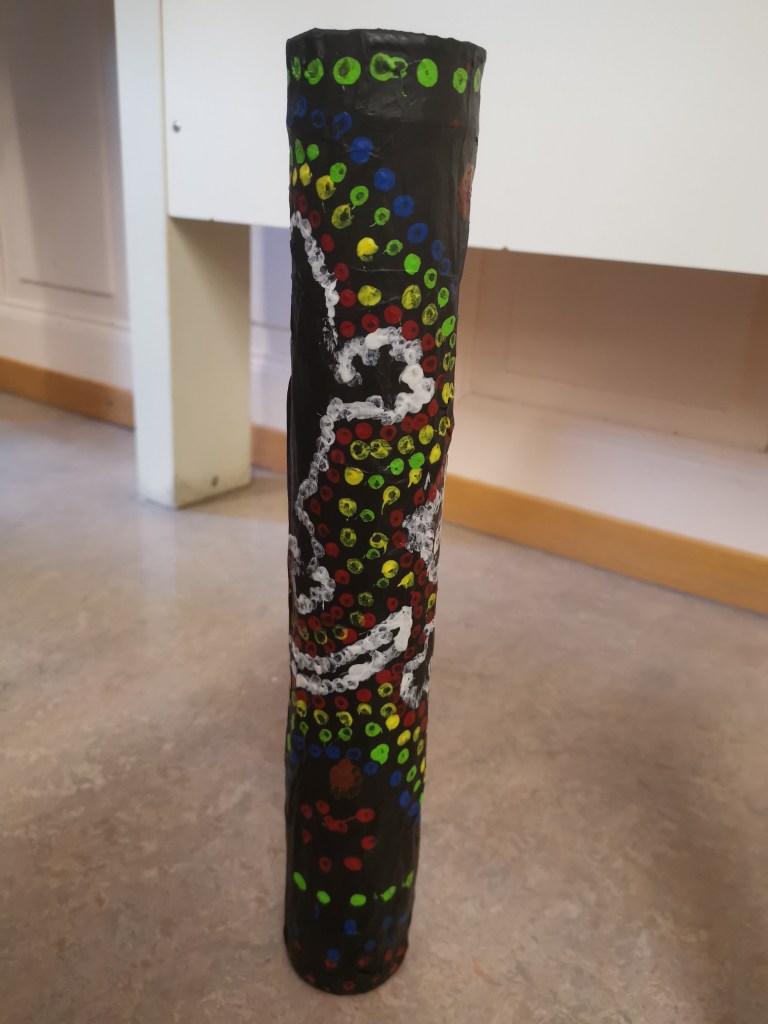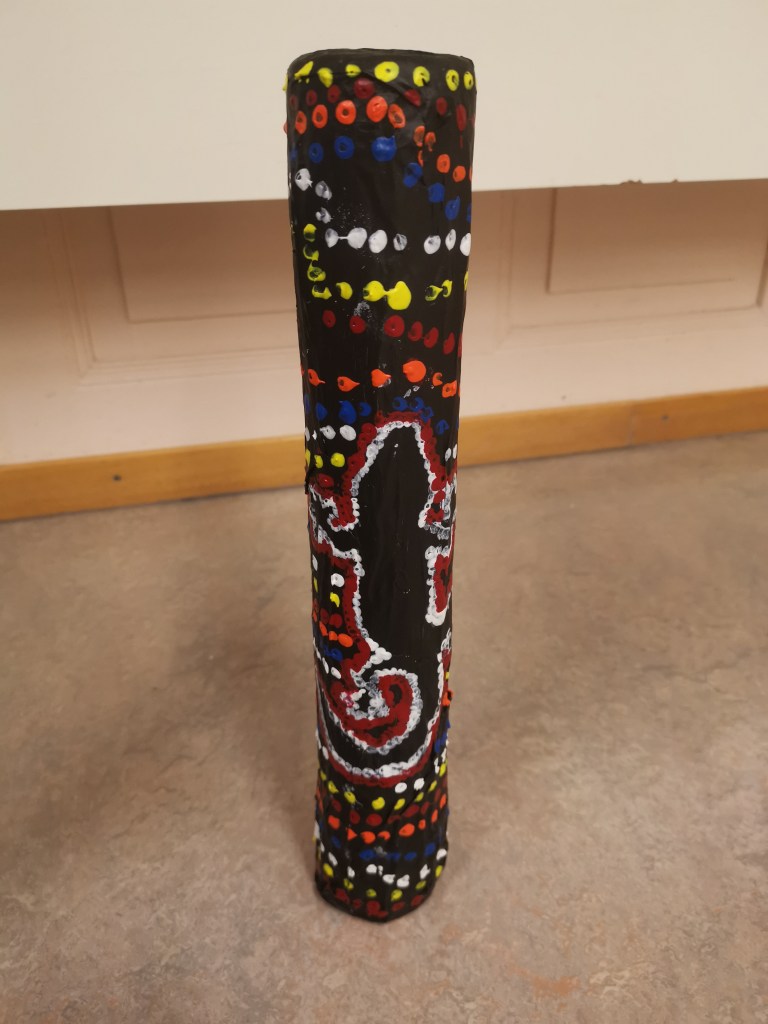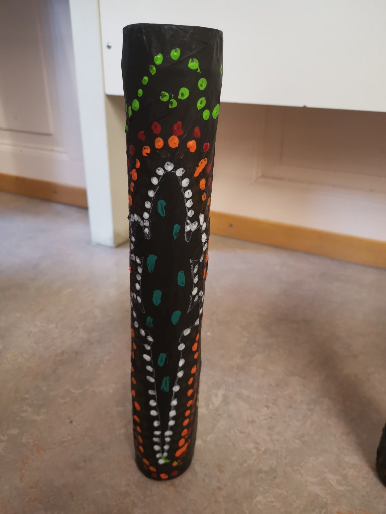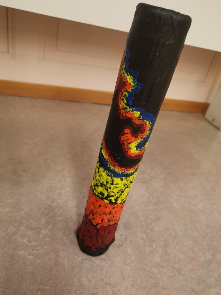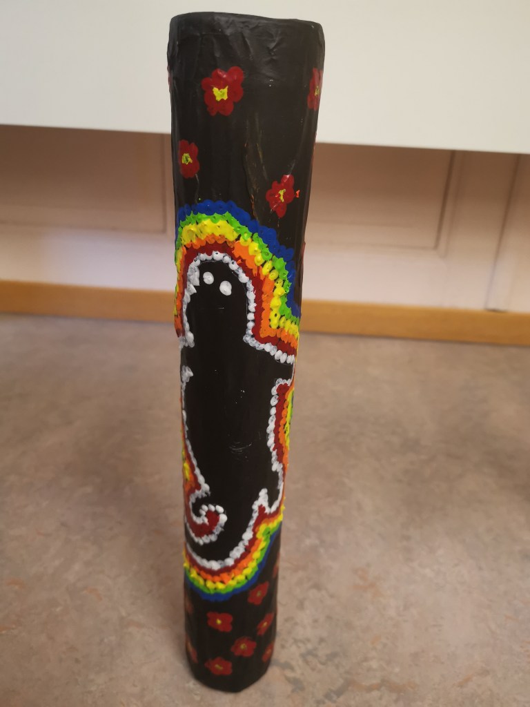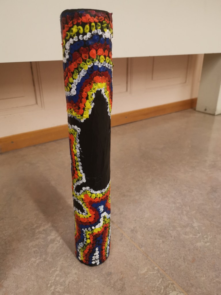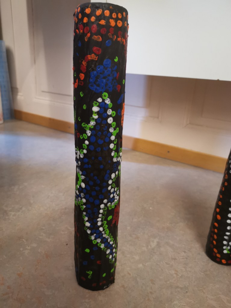 Bâtons de pluie version « art aborigène » Voici les créations de la 7HA (durant l’année scolaire 2019-2020)